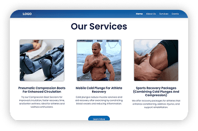 This sleek site positioned our client as a trusted brand across the US. Focused on recovery and performance, we showcased their services for athletes and wellness pros, while enabling event bookings and regional expansion—becoming the go-to at sports events and health expos.